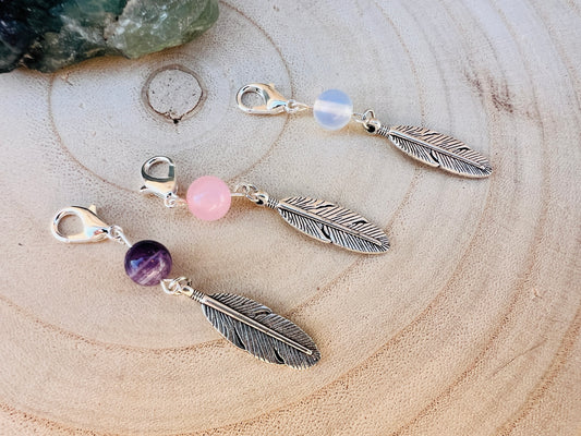 Small, Simple Pet Collar Charm - Animal Healing Crystal Feather Charm