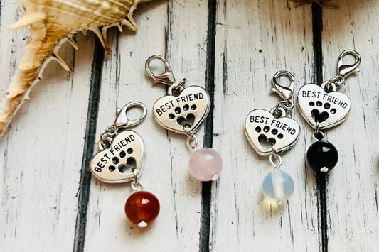 Enhance your pet's collar with our gemstone pet collar charms. Available in a variety of styles, these charming accessories easily attach to standard collars, adding a touch of elegance and personality.